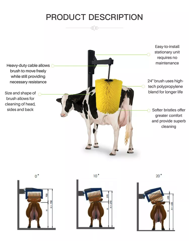 2. Verstelbare hoeken van 0°/10°/20° zijn geschikt voor vee van verschillende groottes en maken het reinigen van de kop, zijkanten en rug mogelijk.