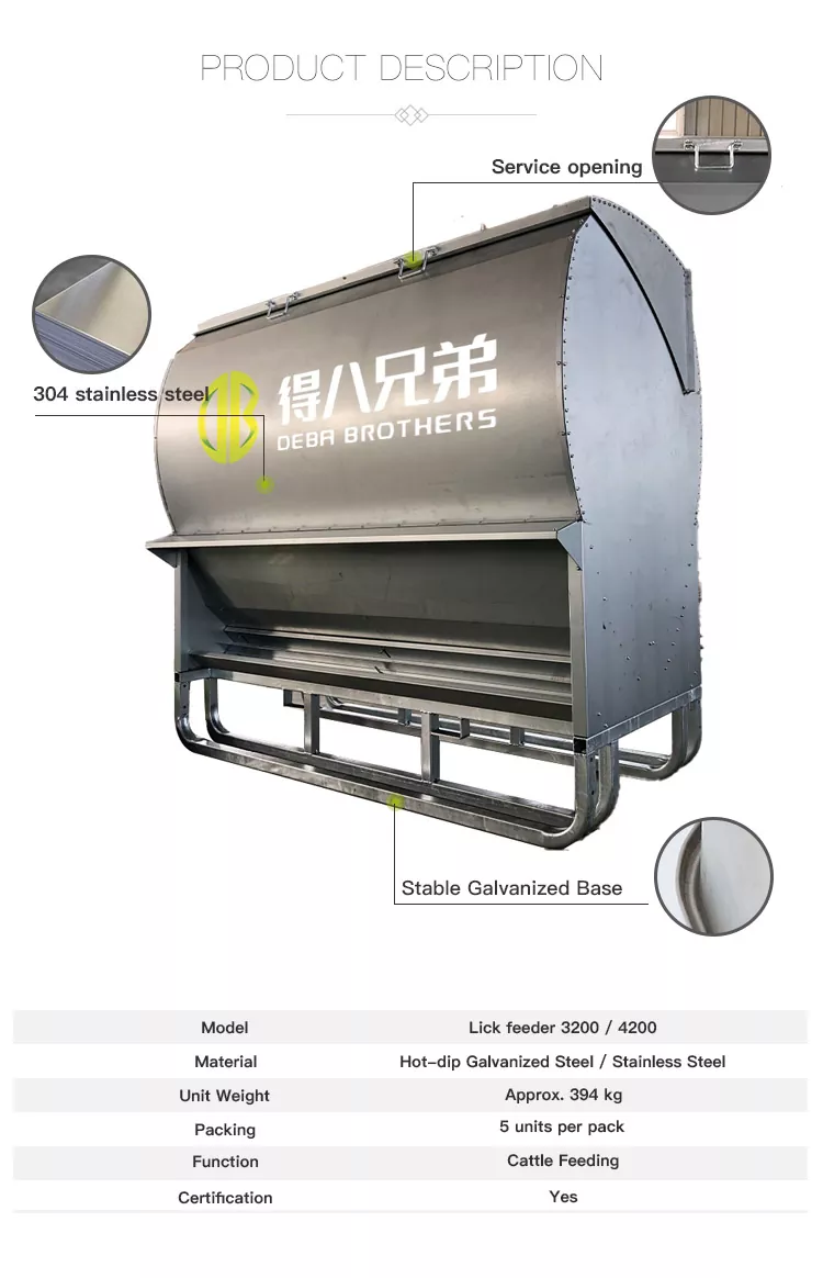 5. Praktisch ondersteunend ontwerp: toegangspoorten aan de zijkant vergemakkelijken interne reiniging en vervanging van onderdelen; De modulaire verpakking met een kit met kleine onderdelen en beschermend karton minimaliseert transportschade, en het ontwerp voldoet aan de Australische normen voor veehouderijapparatuur voor grootschalige landbouwactiviteiten.
