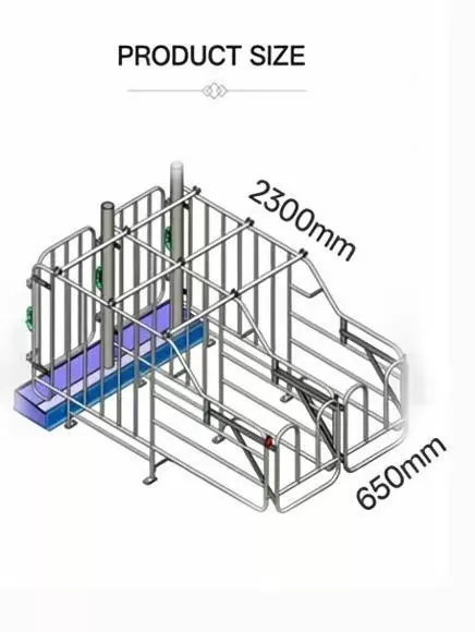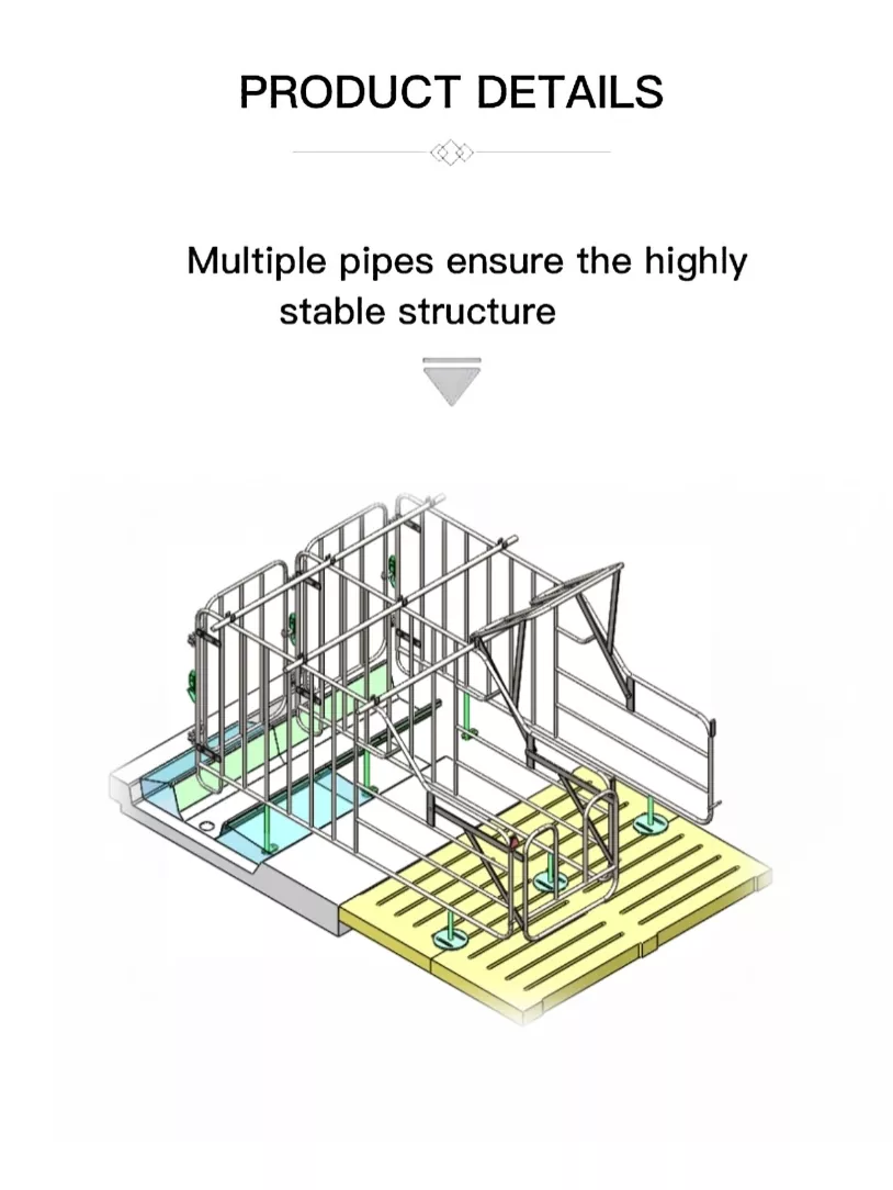 1. Veilige vergrendelingsdeur aan de voorkant met betrouwbare grendel voorkomt ontsnapping van de zeug, met afgeronde metalen randen om letsel bij dieren te voorkomen.